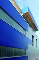 Der nach Süden ausgerichetete Wohnbereich erhält ein über der halle gebautes Holzdeck mit freiem Blick auf Odenwald und die Rheineben. Das gesamte Objekt ist mit Sandwichpaneelelemente zweifarbig eingehaust, wodurch die unterschiedlichen Bauweisen und deren Funktionen nachvollziehbar sind. Informieren Sie sich auch über Planung für Wohnungsbau.
